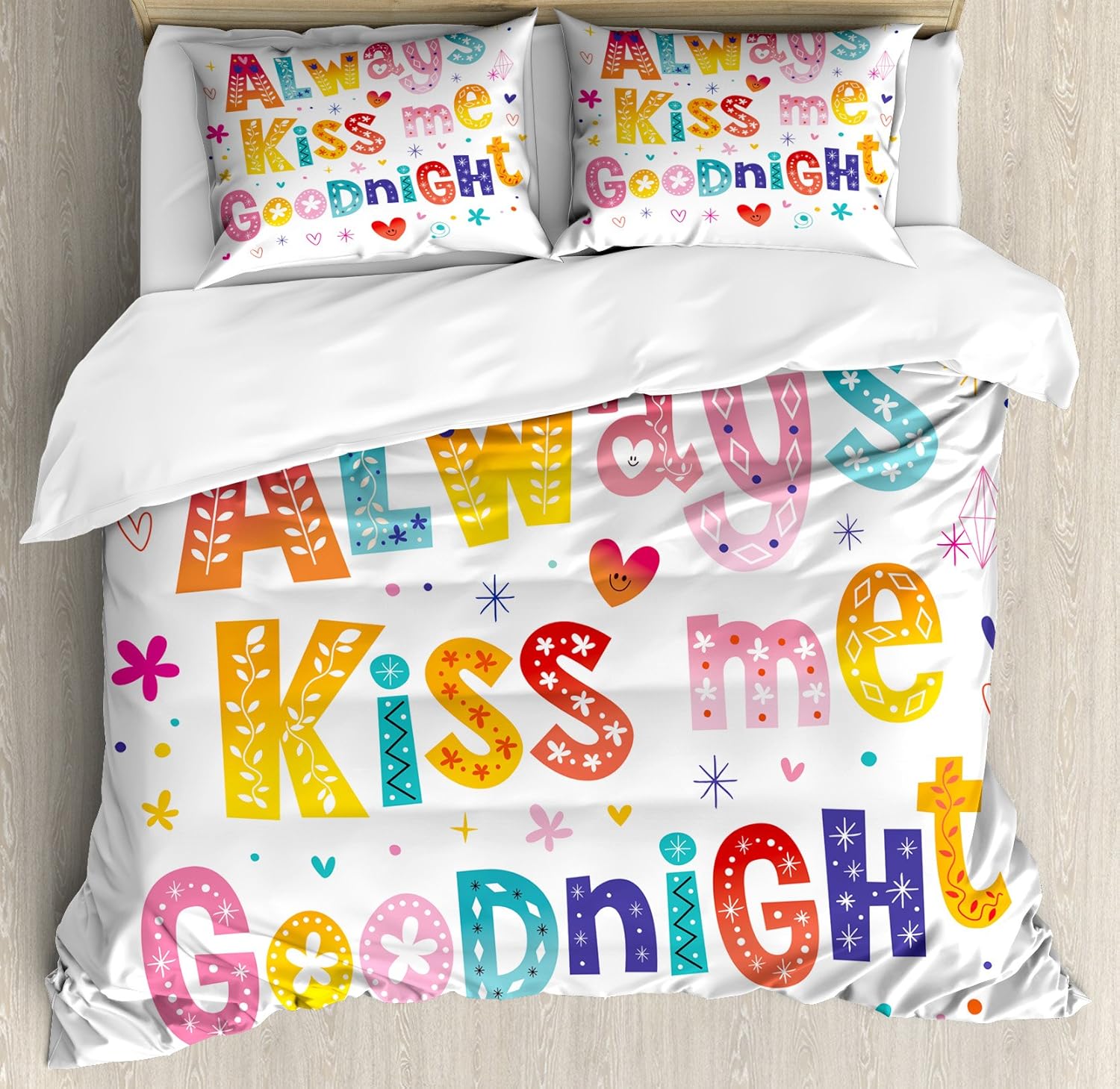 Amazon Com Lunarable Always Kiss Me Goodnight Duvet Cover Set
